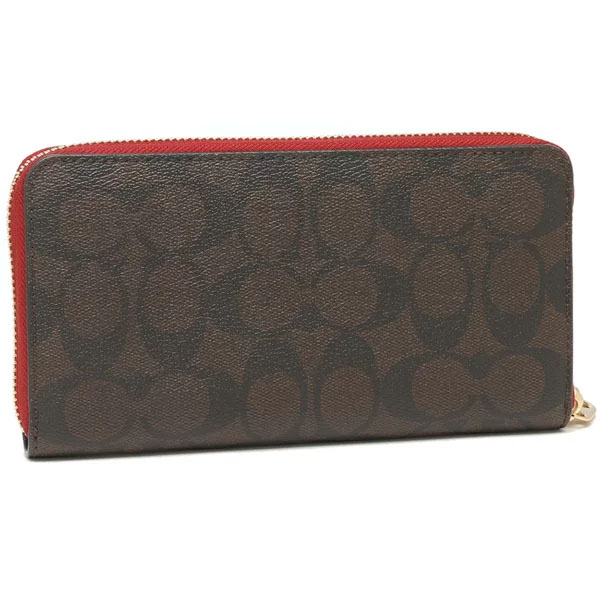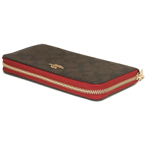 Coach Wallet In Gift Box Long Wallet Long Zip Around Wallet In Signature Canvas Brown 1941 Red # C4452