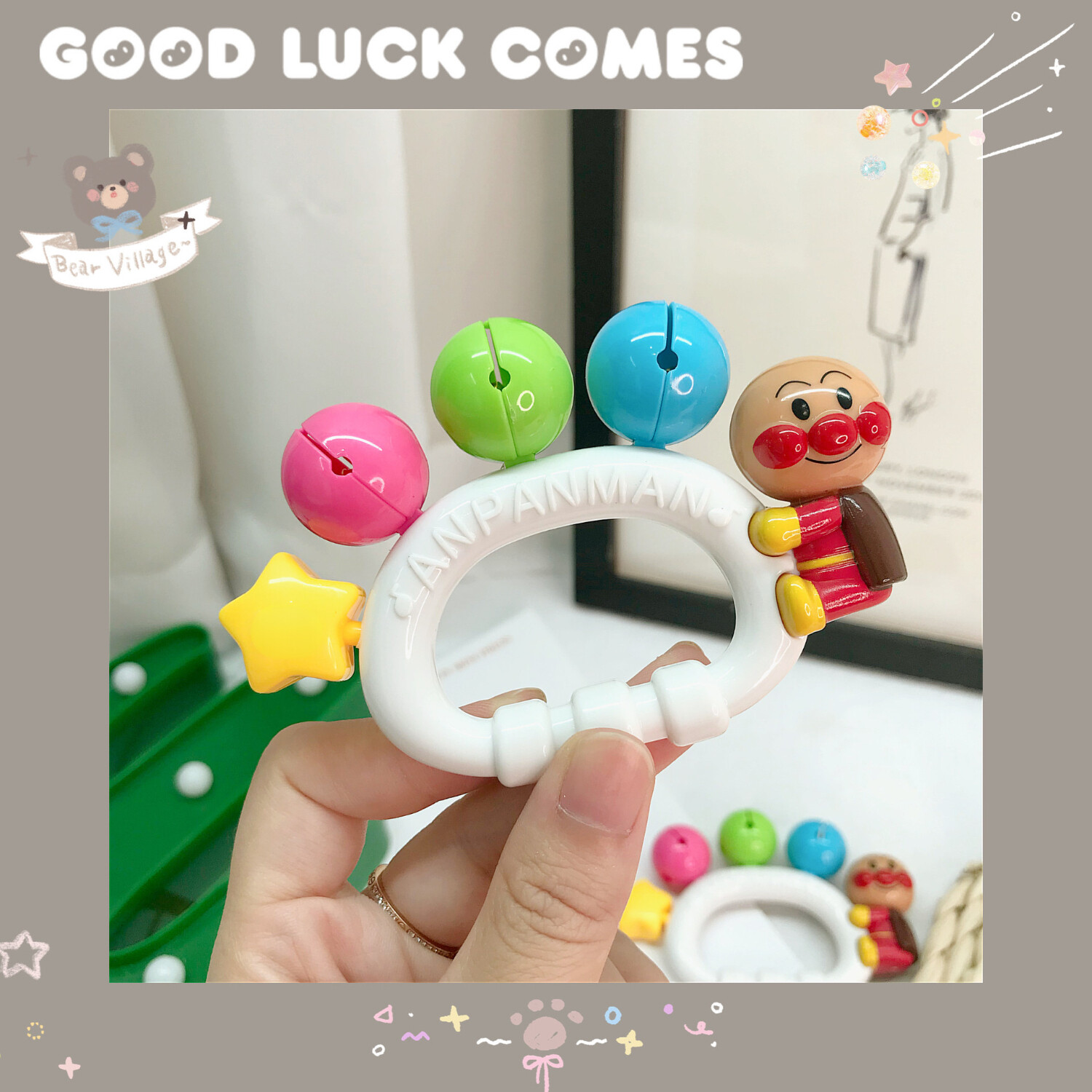 Cute Hand Rattle Bell | Plush Ball | Grasp Toy | Baby Bath Toys | Anpanman Cartoon Play Toys | Soft Ball | Tumbler | Newborn Infant Toddler Early Learning | 3-6-12 Month, 1 2 3 Year Old