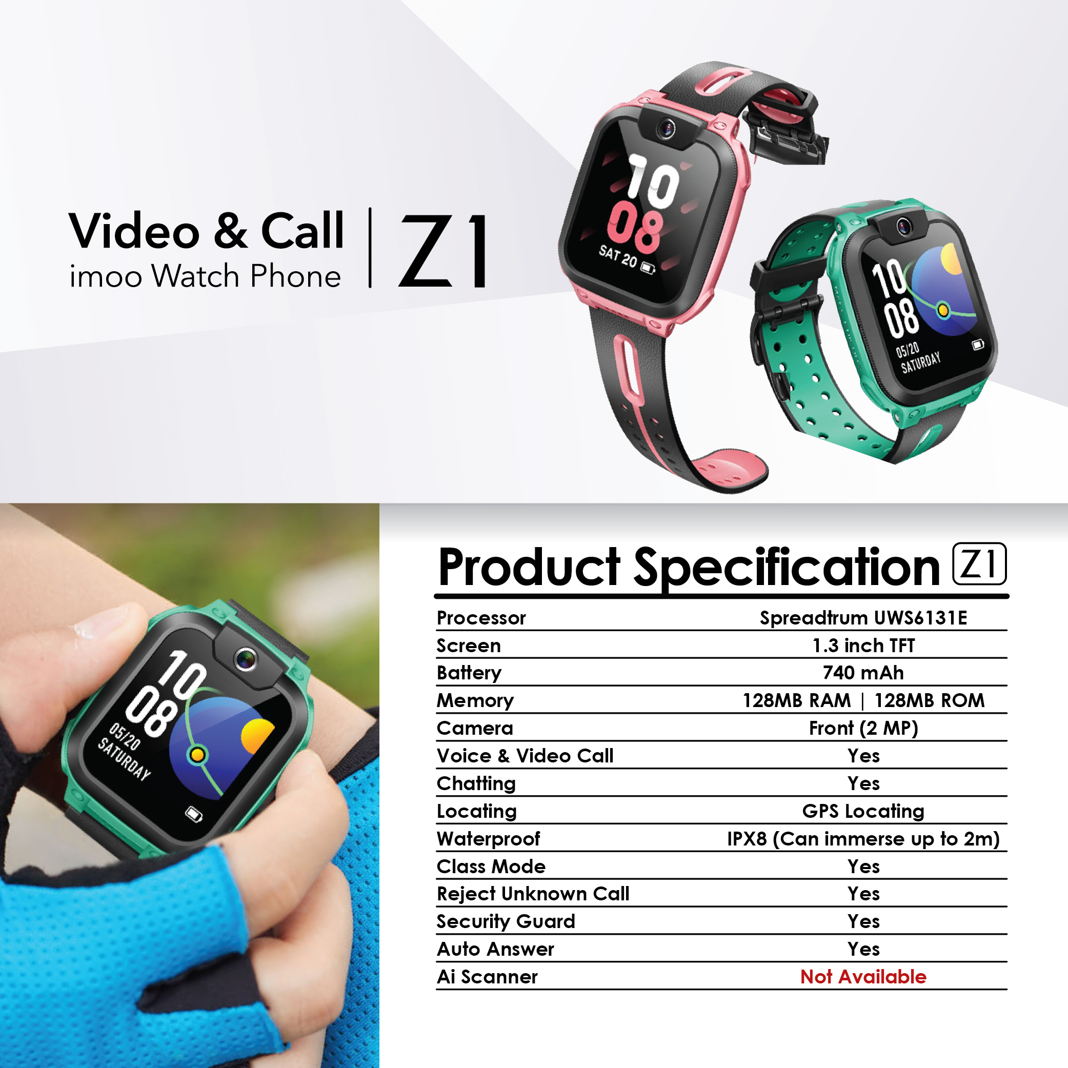 - IPX8 Water-Resistance : With qualified water-resistant material, the child can wash hands wearing imoo watch phone.