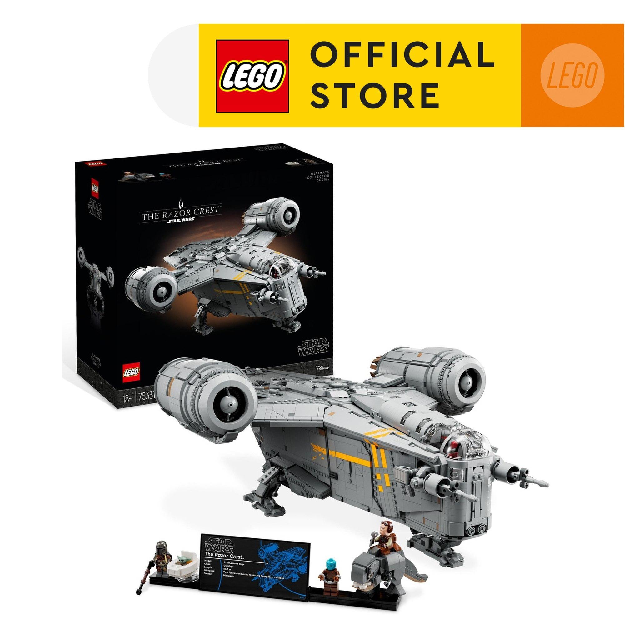 The set includes The Mandalorian, The Mythrol and Kuiil LEGO® minifigures, a Grogu LEGO figure in a pram, and a buildable Blurrg LEGO figure that can fit inside The Razor Crest’s cargo compartment.