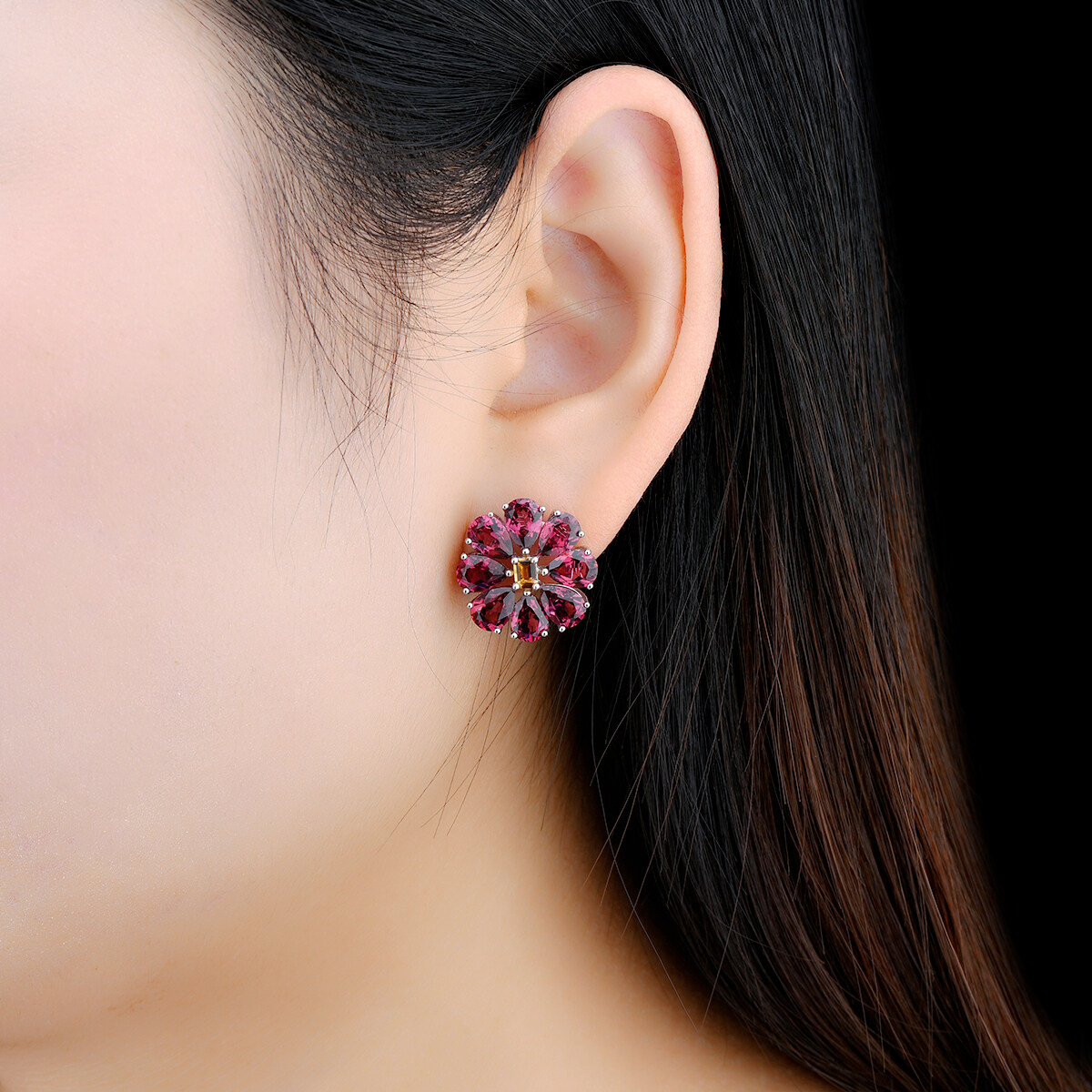 Lohaspie Jewelry Genuine 14 Carats Citrine Stone Original Stud Earring Silver 925 Natural Gemstone Jewellery Natural Rhodolite Rose Garnet Earring For Women Jewelry